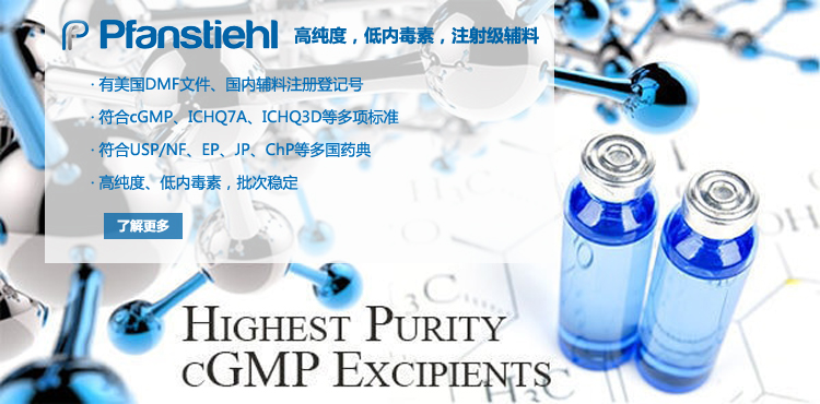 “熱烈祝賀Pfanstiehl的注射級甘氨酸Glycine(G-140)喜獲CDE登記號F20250000403, 這是Pfanstiehl產品獲得的第18個CDE登記號!”甘氨酸在醫藥輔料制劑中應用廣泛,, 可作為緩沖劑,增溶劑,穩定劑等,具有諸多優勢。Pfanstiehl秉承一貫高品質理念,為滿足全球生物制藥行業對于高品質甘氨酸的需求,隆重推出的注射級甘氨酸Glycine (G-140), 具有超高純度,超低內毒素,超低金屬殘留的特點,單獨檢測29種金屬離子,并且新增DNA,RNA,DNA酶,RNA酶和脂肪酶,亞硝酸鹽等多項質量指標的檢測,符合多國藥典規定(USP, EP, BP, JPE, ChP),可用于生物治療性藥物和疫苗的生產。產品信息:· 產品名稱:Glycine, High Purity, Low Endotoxin, Low Metals, USP, EP, BP, JPE, ChP (G-140)· 中文名稱:甘氨酸· 分子式:C2H5NO2· 分子量:75.07 g / mol· CAS號:56-40-6· 產品貨號:G-140產品特點: · 超高純度,超低內毒素,超低微生物含量,超低金屬雜質殘留· 質量指標新增DNA,RNA,DNA酶,RNA酶,脂肪酶和亞硝酸鹽檢測· 符合多國藥典:USP, EP, BP, JPE, ChP· 符合ICH Q3D標準· 符合GMP標準· 已獲DMF和CDE登記號 產品應用:· 緩沖劑· 穩定劑· 增溶劑如果您對Pfanstiehl注射級別Glycine G-140感興趣,歡迎聯系Pfanstiehl 中國區代理商北京西美杰科技有限公司獲得如下詳細的產品概況說明文件和測試樣品。Pfanstiehl Inc.最新產品系列如下,歡迎聯系北京西美杰科技有限公司獲取100g裝免費樣品。北京西美杰科技有限公司為Pfanstiehl中國代理,為客戶提供完善的技術支持與售后服務。歡迎撥打西美杰客服電話400-050-4006或者登陸網站www_xmjsci_com.wlxyy.com.cn了解更多信息。 更多>
